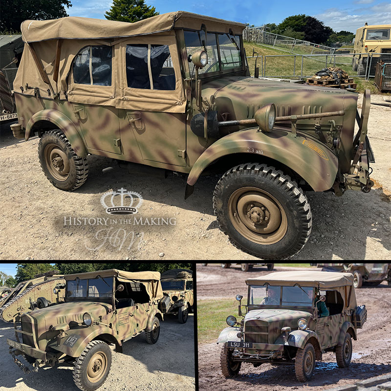 This is the latest addition to our fleet of WW2 German Action Vehicles. Built on a Soviet GAZ 69 chassis and drive train this vehicle is a very high detailed replica of the original Stoewer type 40 field car. These photographs were taken at the 2024 Bovington Tank Fest, Dorset, UK. Photo credit Jean Arthur and Adam’s Military Photography.